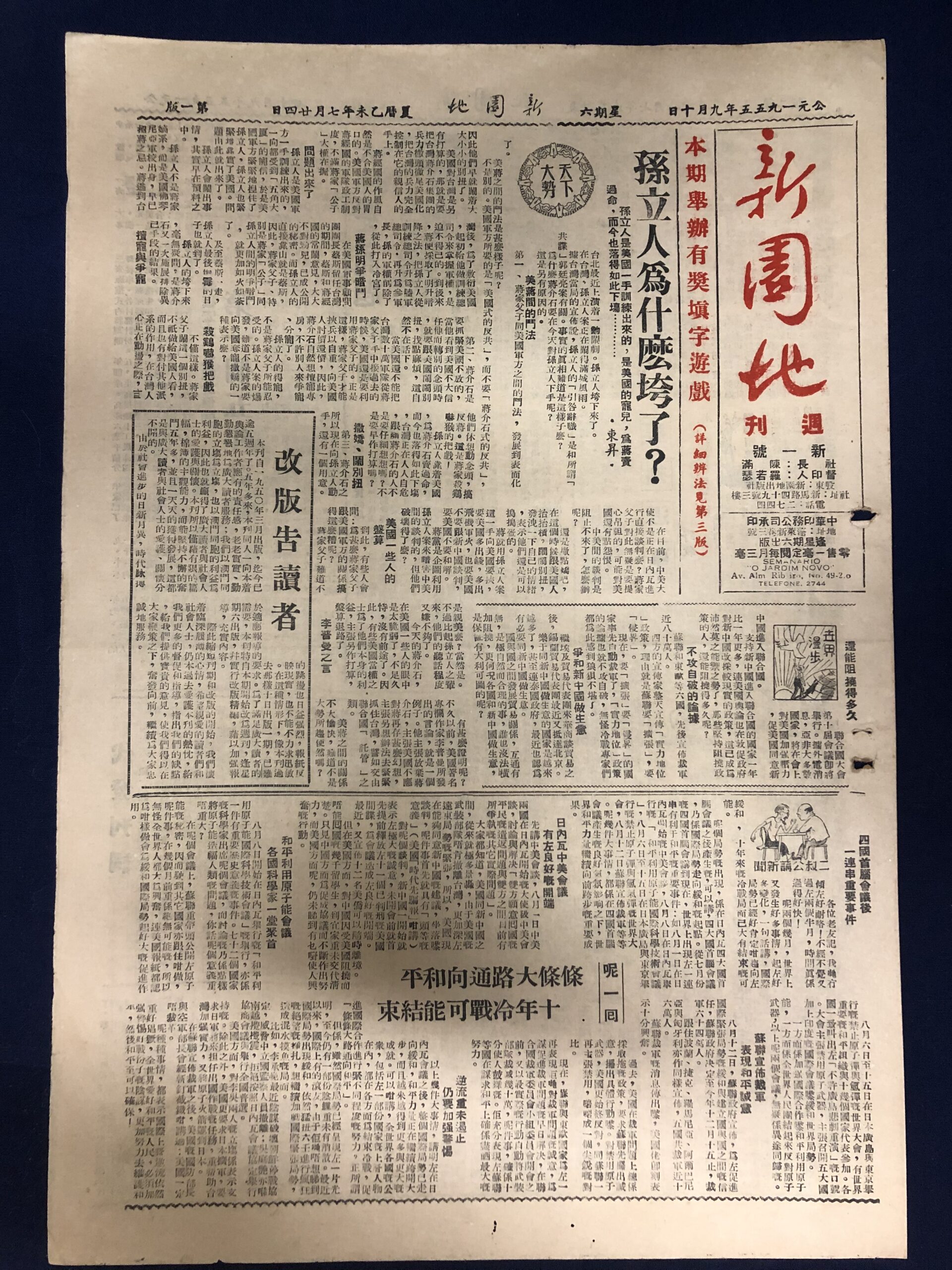 中 PT 《新園地》 1950.3.18新園地 Jornal Novo Jardim 18-03-1950 1956.12.22新園地 Jornal Novo Jardim 22-12-1956 1955.9.10新園地 Jornal Novo Jardim 10-09-1955